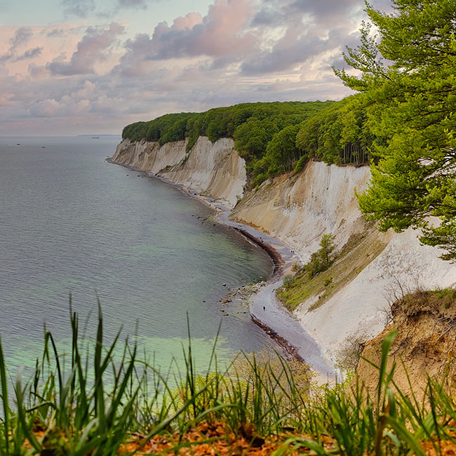 Zu den spektakulärsten Sehenswürdigkeiten auf der Insel Rügen zählen sicherlich die Rügener Kreidefelsen, in Deutschland einmalig und im restlichen Europa nur noch an wenigen Orten zu finden (zum Beispiel im englischen Dover oder auf der dänischen Insel Møn). Die Kreide besteht aus den Resten kleiner Tiere eines uralten Meeres, die sich über Millionen Jahre abgelagert haben und nun die Kreidefelsen bilden. Auf Rügen besonders schön, direkt an der Ostsee mit dem Buchenwald als Haube, genießt Du hier herrliche Ausblicke auf die Felsenküste und die Ostsee hinaus.